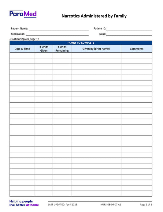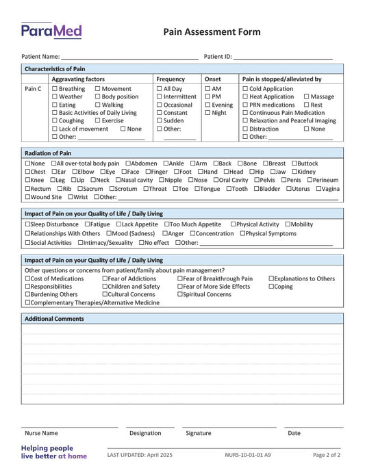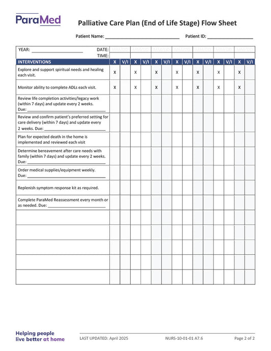 Palliative Care Plan Flow Sheet - End of Life Stage