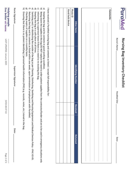 Nursing Bag Inventory Checklist