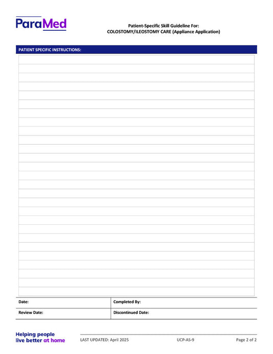 Colostomy/Ileostomy Care – (appliance application) (Skill Guideline)