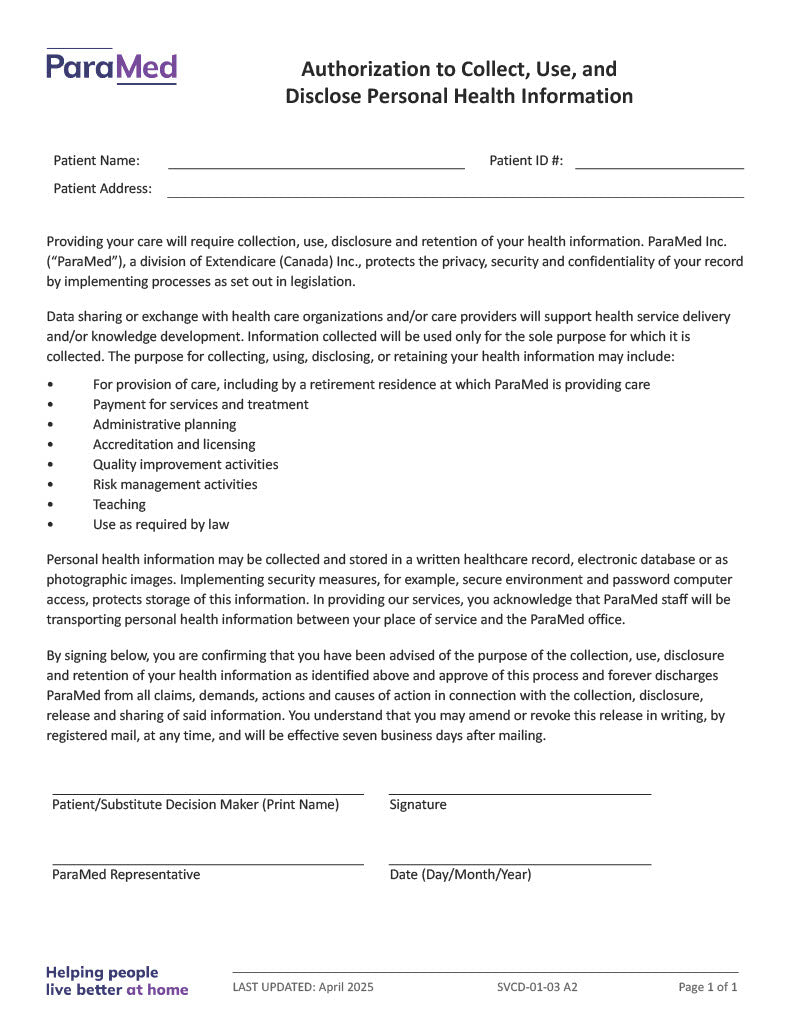 Authorization to Collect, Use, and Disclose Personal Health Information