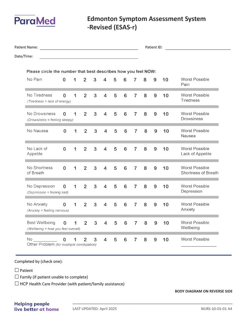 Edmonton Symptom Assessment System ESAS-R
