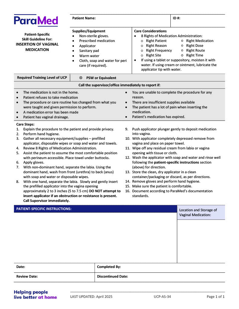 Insertion of Vaginal Medication (Skill Guideline)