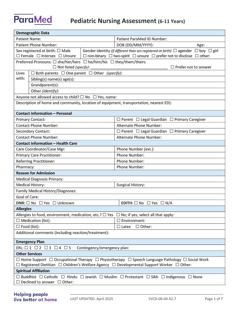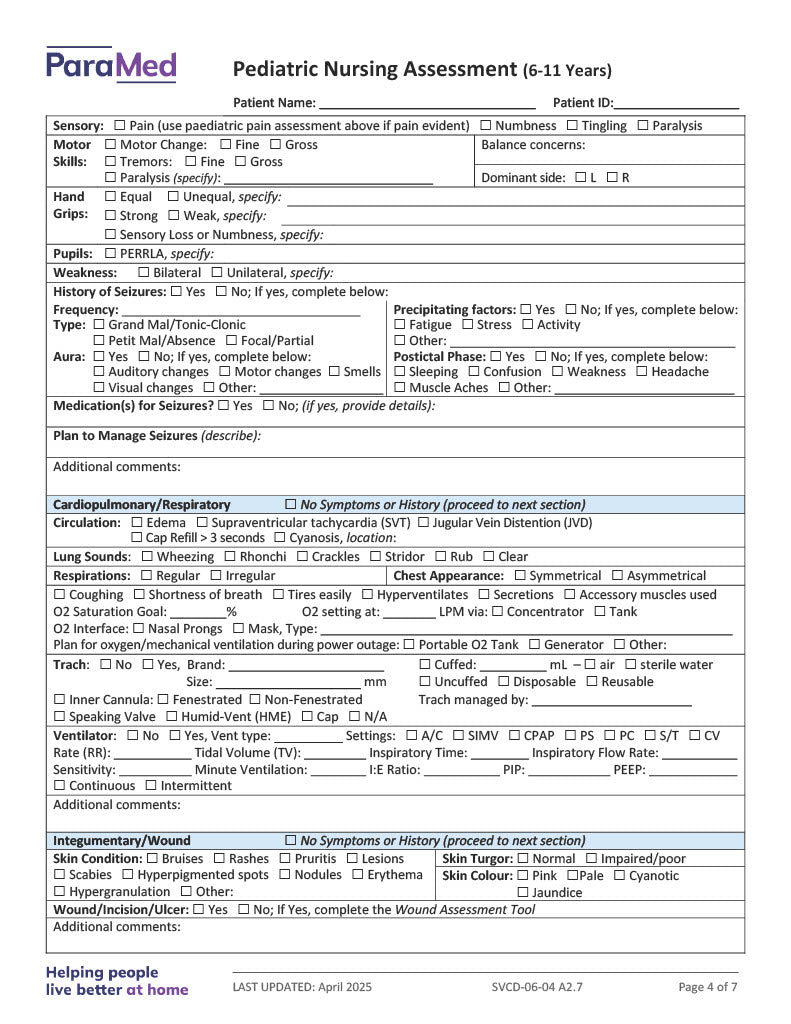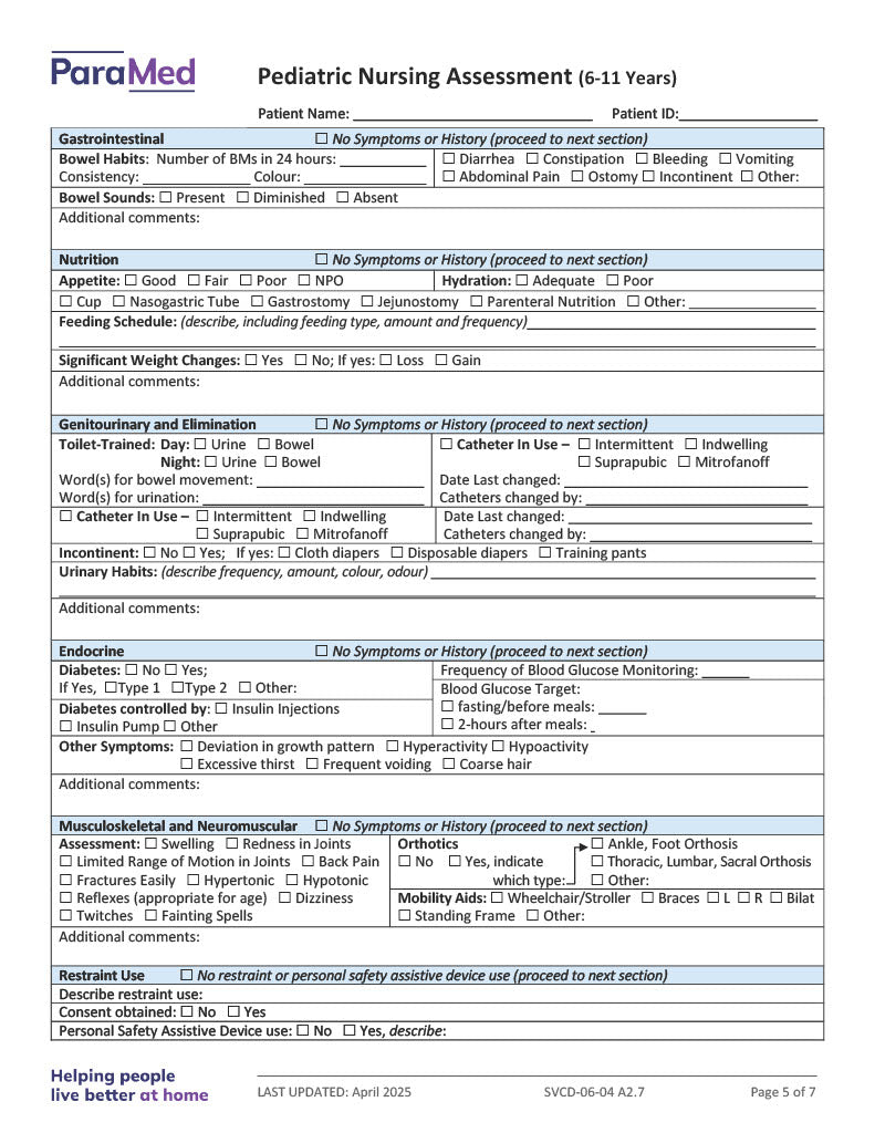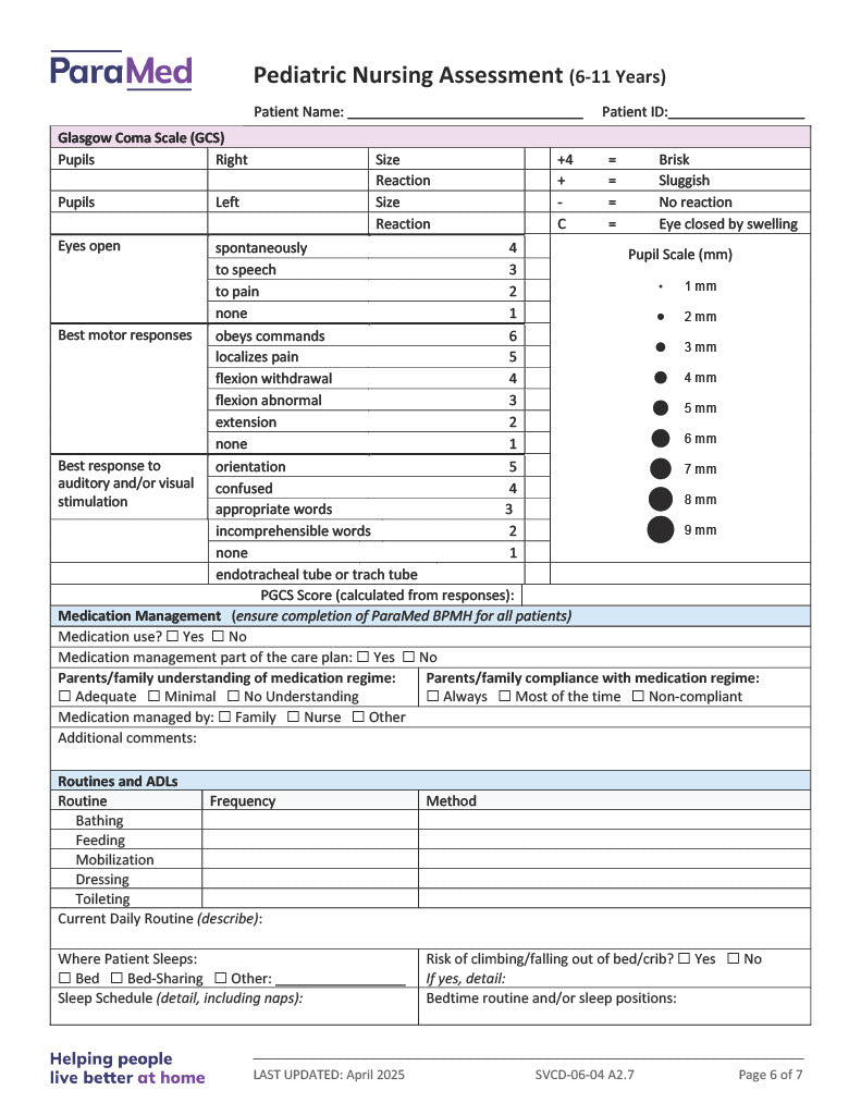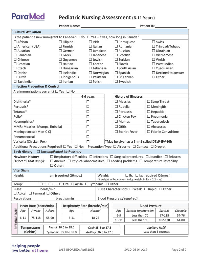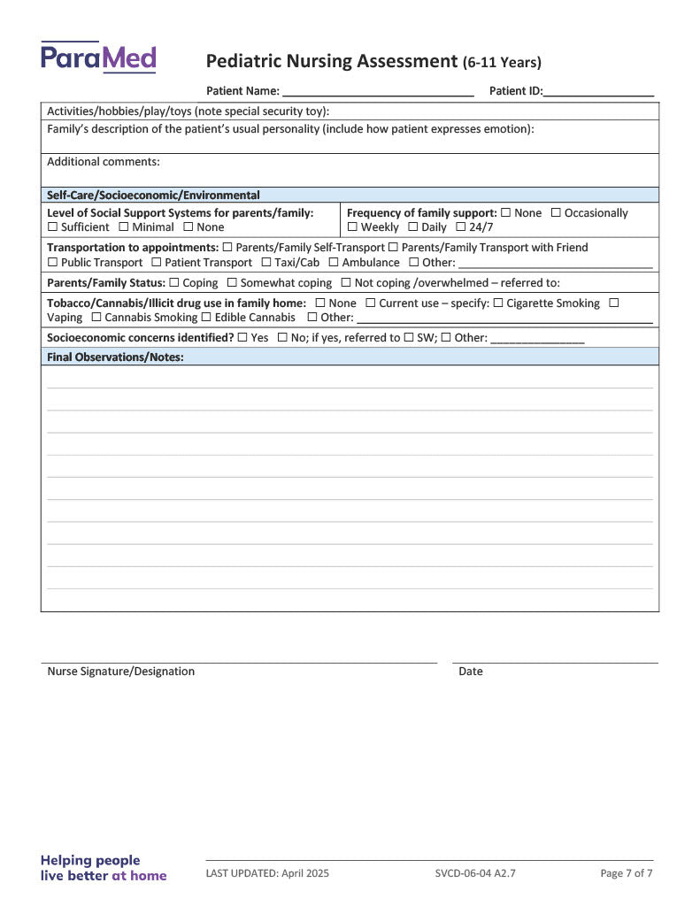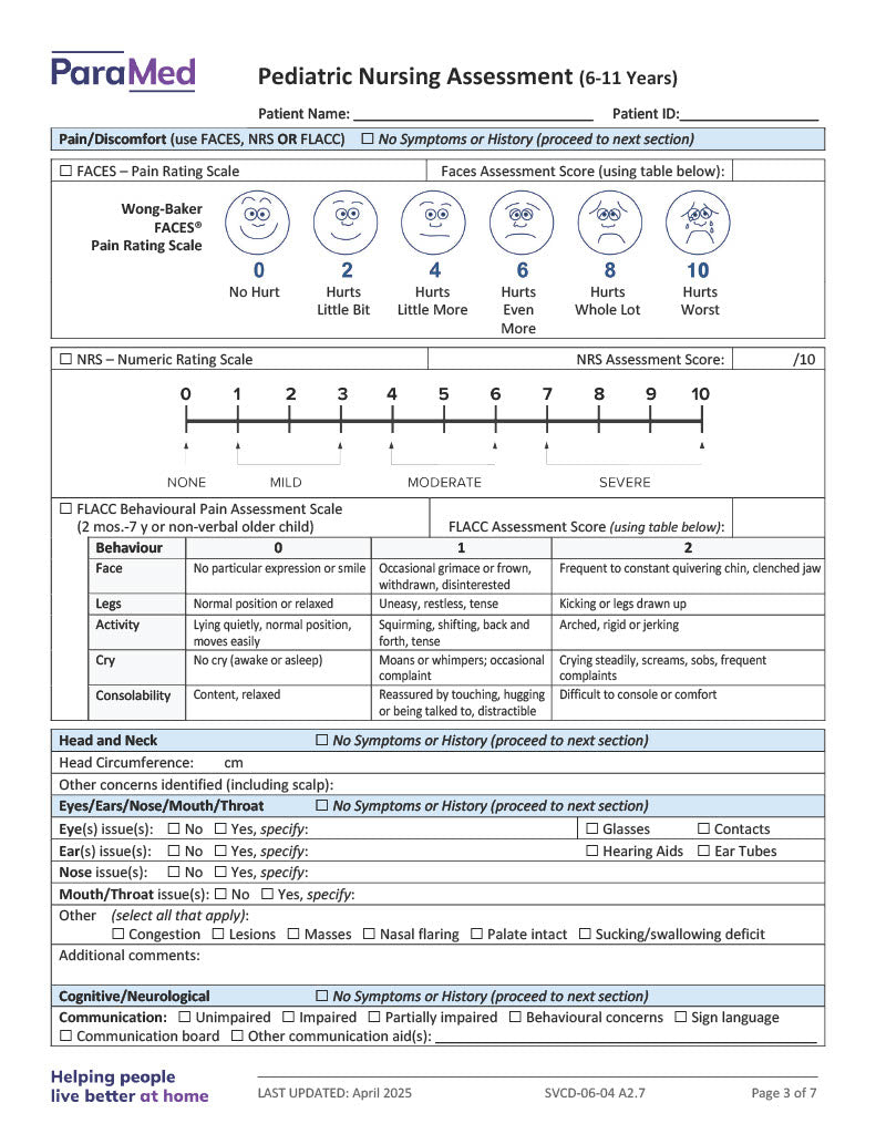 Pediatric Nursing Assessment (6-11 Years)