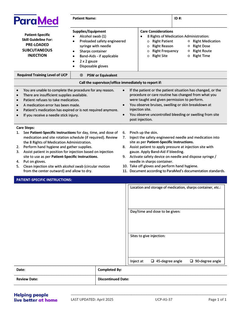 Pre-Loaded Subcutaneous Injection (Skill Guideline)