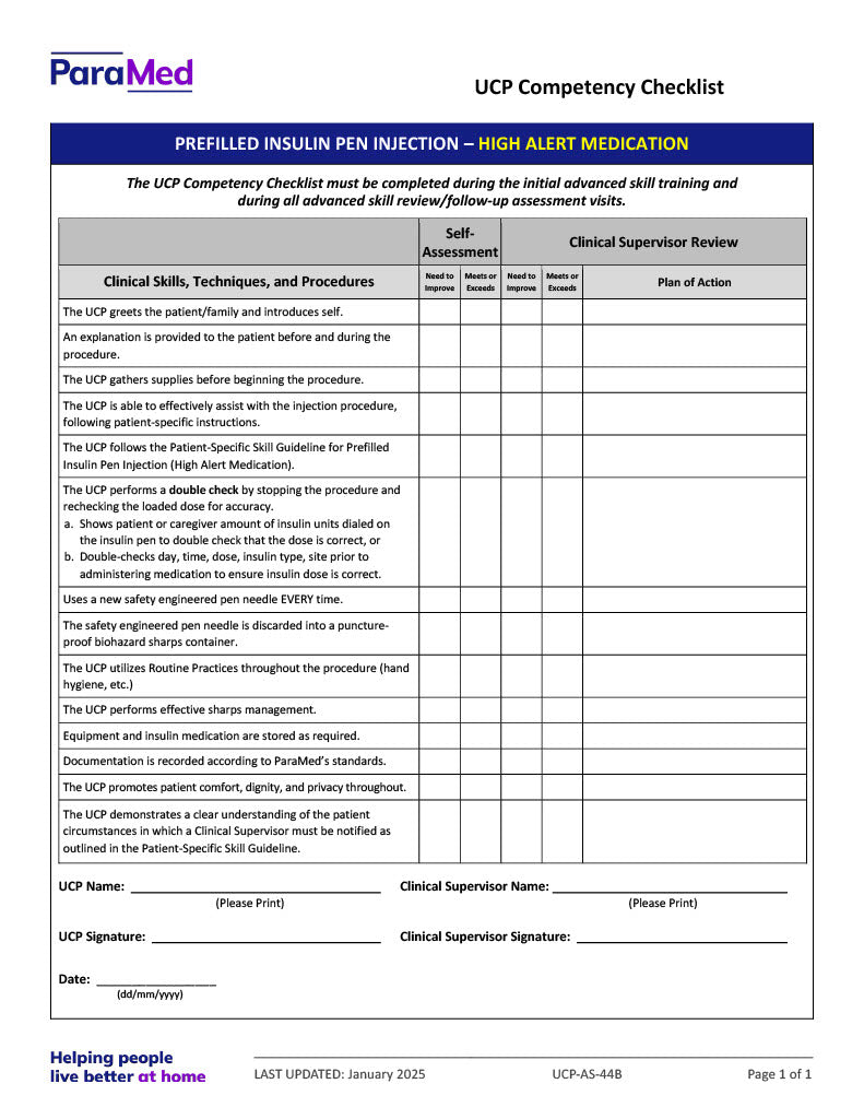 Prefilled Insulin Pen Injection (Competency Checklist)