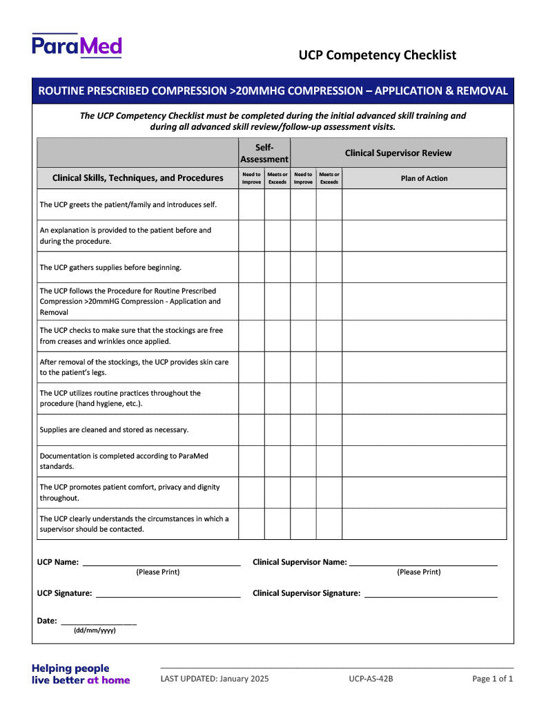 Routine Prescribed 20mmhg Compession (Competency Checklist)