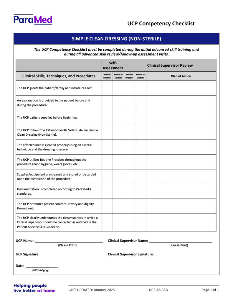 Simple Clean Dressing (Non-Sterile) (Competency Checklist)