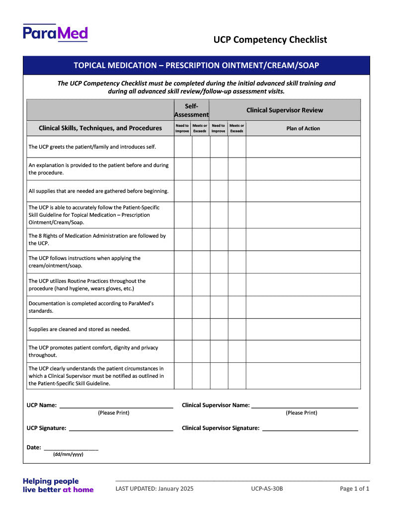 Topical Medication - Prescription Ointment/Cream/Soap (Competency Checklist)